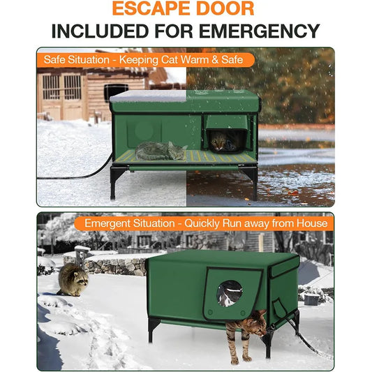 Outdoor Waterproof Cat House Warm Heated Winter Cat House Insulated Outside Foldable Cats Nest Tent Sleeping Extra Large Pet